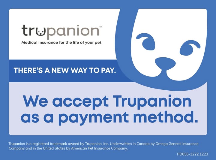 For our clients who are Trupanion members, we are now able to accept direct payments. This means that Trupanion can pay us directly for their portion of the invoice at checkout, and members leave paying only their portion. That’s right! No more waiting for reimbursement.